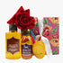 Se compone de gelatina espumosa a base de aceite de argán, miel y aceite esencial de naranja, aceite precioso a base de aceite de argán perfumado con azahar , jabón ovalado a base de aceite de argán y glicerina vegetal perfumado con azahar y una rosa de terciopelo perfumada. Papel con motivos florales con un lazo completan la idea de un regalo perfecto.